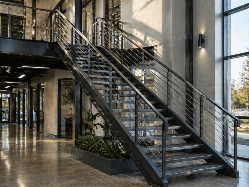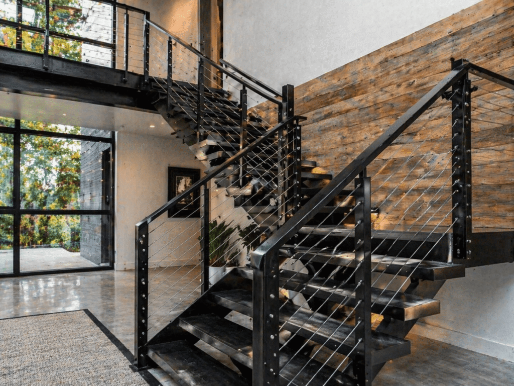 Steel allows for floating stairs, mono stringer designs, and open layouts that create a high-end look in modern homes.